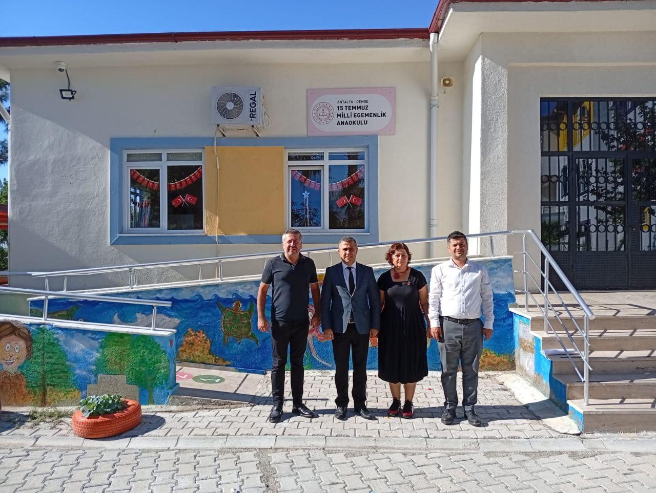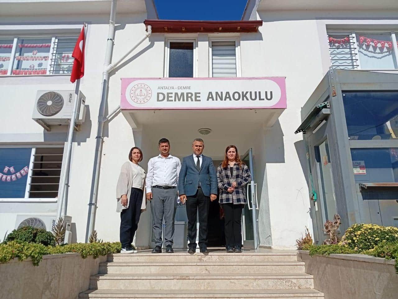 İlçe Milli Eğitim Müdürümüz Sayın Hüseyin ORHANTEKİN ve Şube Müdürü Hakan BABACAN, Demre ilçemizdeki Okul Öncesi okullarımızdan, Beymelek Ayşe Öğretmen Anaokulu, Salih Kaplan Anaokulu, 15 Temmuz Milli Egemenlik Anaokulu, Hacımusaoğlu Anaokulu ve Demre Anaokulunu ziyaret ederek incelemelerde bulundular. Öğrencilerle etkinlik yaparak oyunlara katıldılar.Kulüp Çalışmaları hakkında bilgi aldılar.